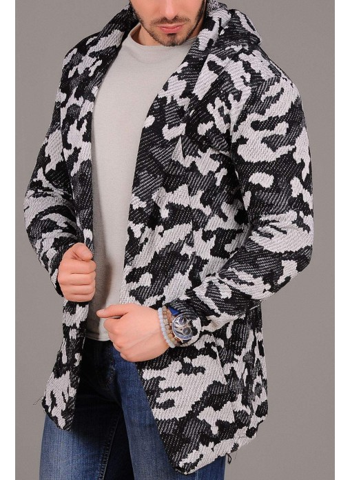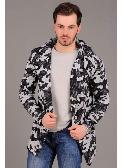 Füme Beyaz Kapşonlu Kamuflaj Hırka