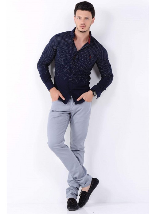 Piti Kare Desen Lacivert Gömlek