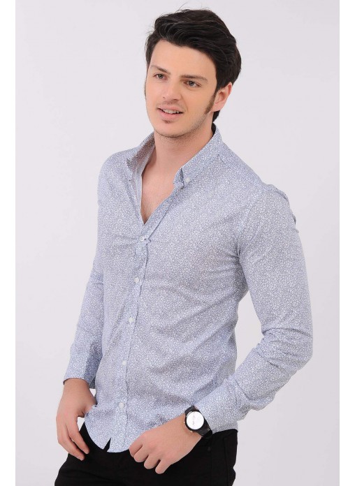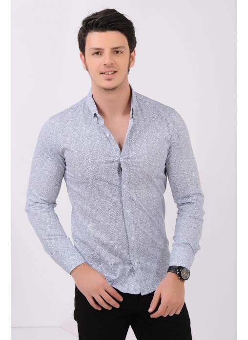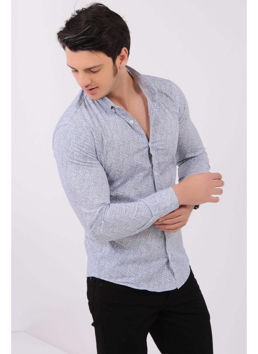Kesim Tipi : Slim Fit Gri Desenli Beyaz Gömlek