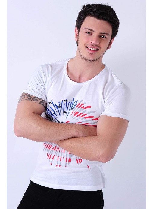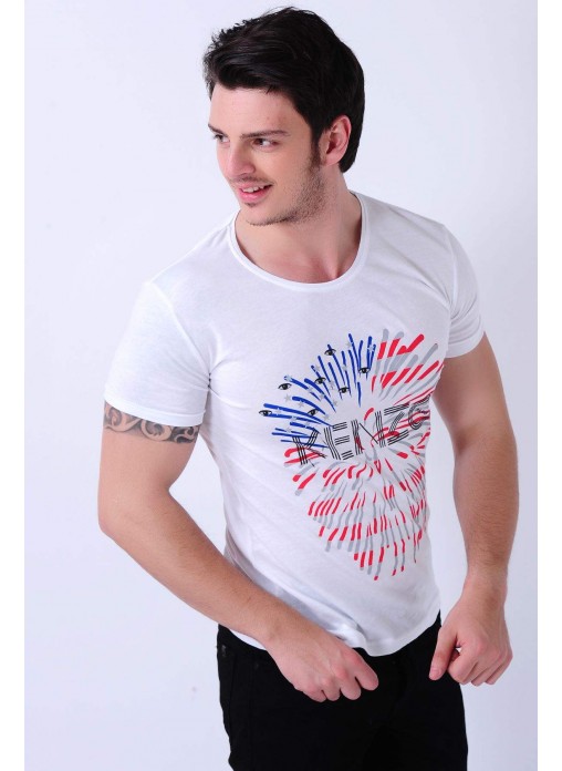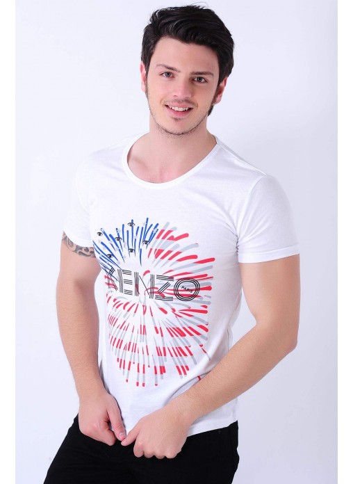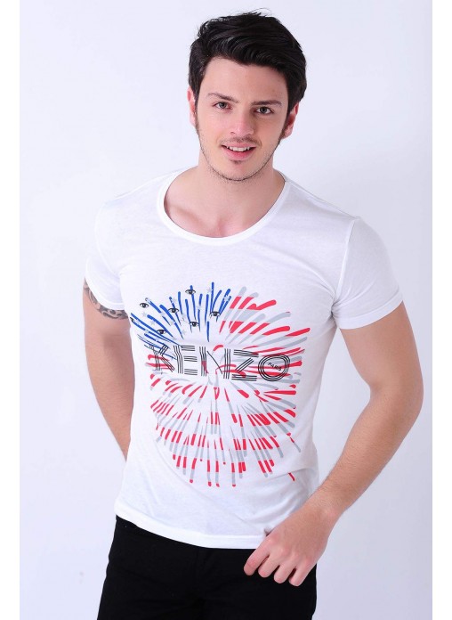 Kesim Tipi : Slim Fit Kenzo Havai Fişek Baskılı Beyaz T-Shirt