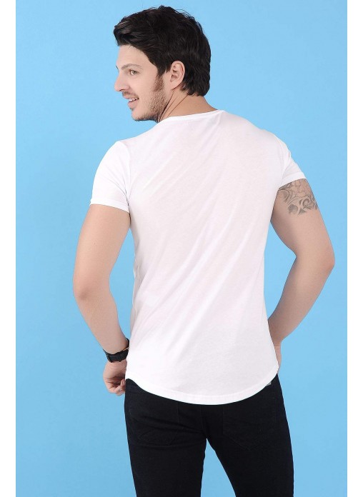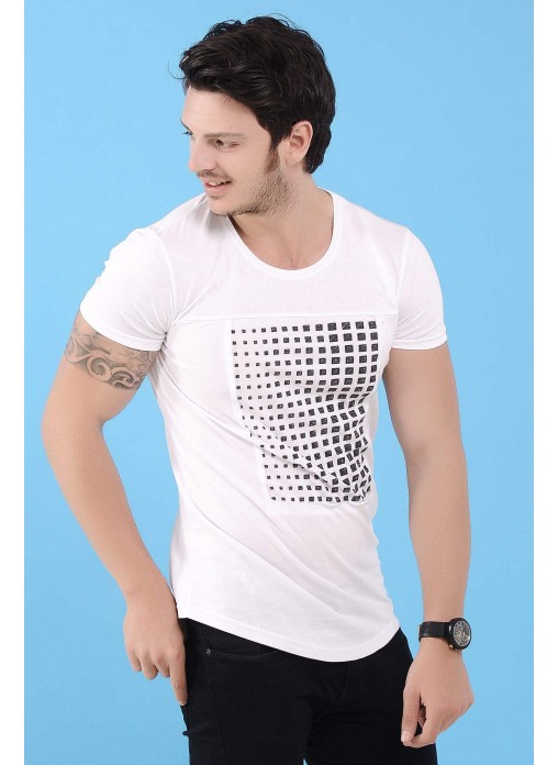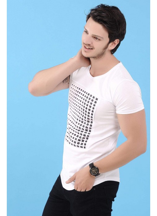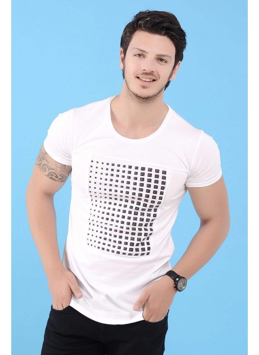 Kabartma Baskı Desenli Beyaz T-Shirt