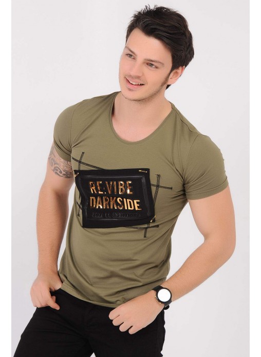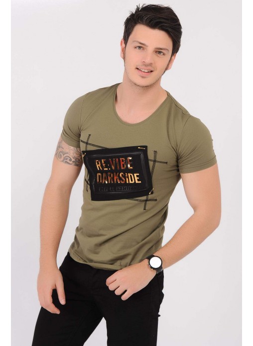Kesim Tipi : Slim Fit Kabartma Baskılı Haki T-Shirt
