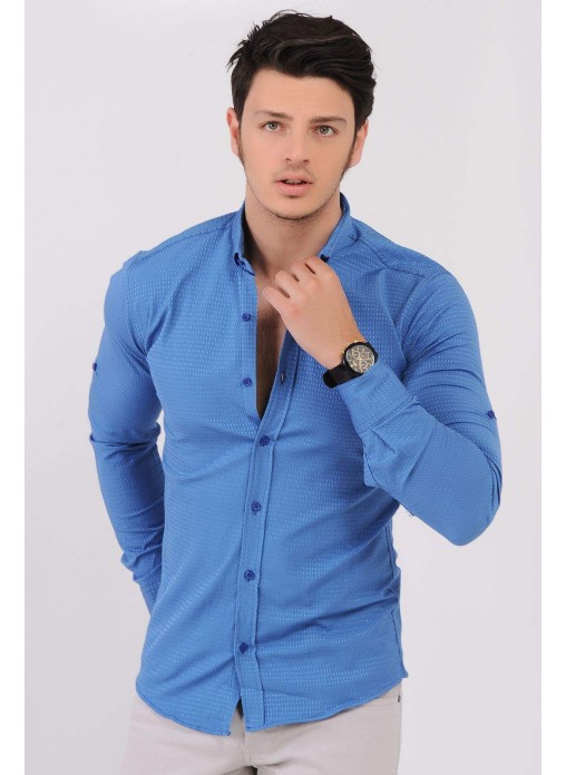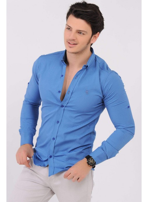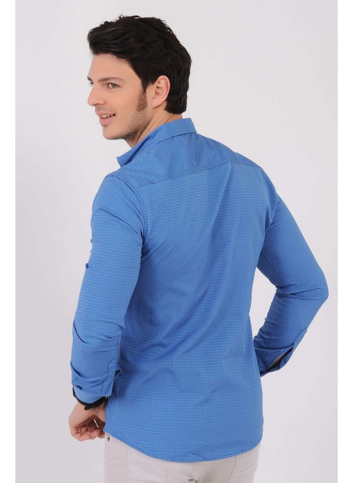 Kesim Tipi : Slim Fit Kabartma Desenli Mavi Gömlek