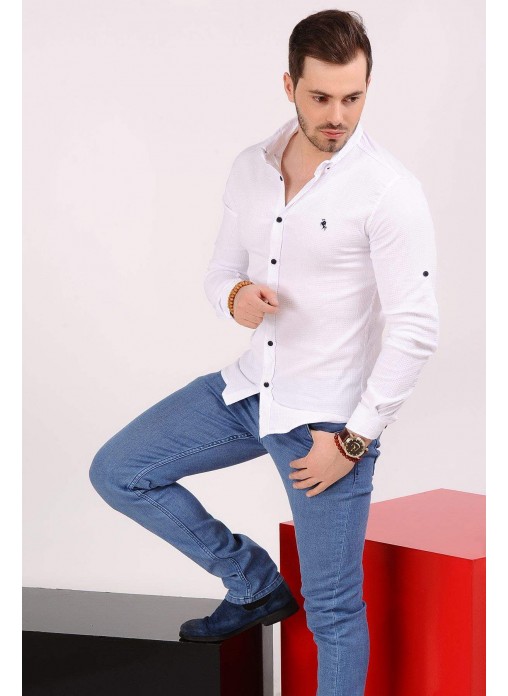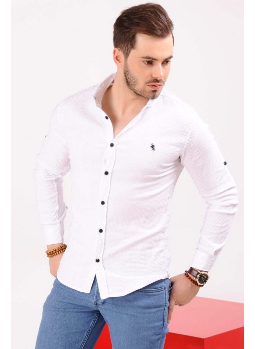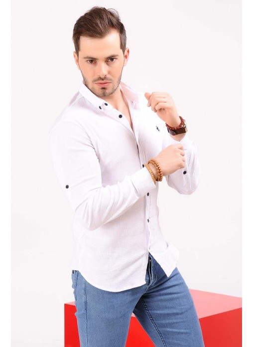 Kabartma Ekoseli Beyaz Gömlek