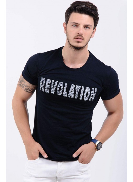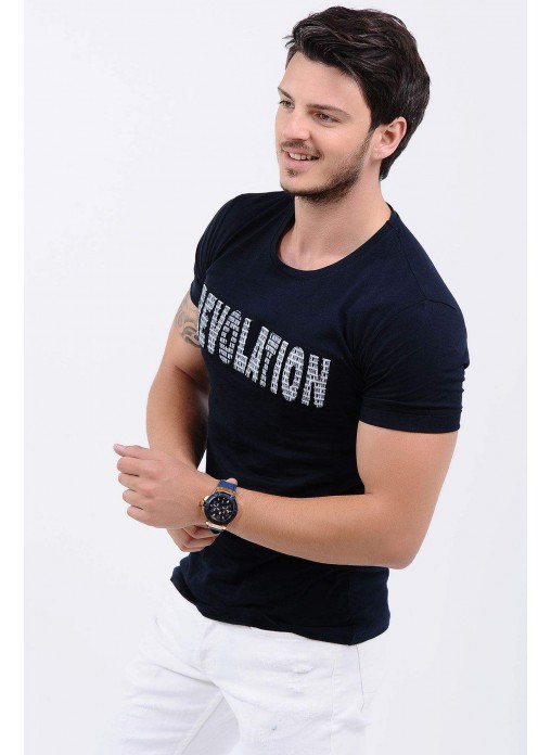 Siyah Çiçek Desen Polo Yaka Sarı T-Shirt