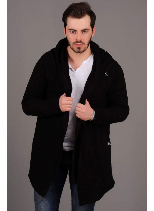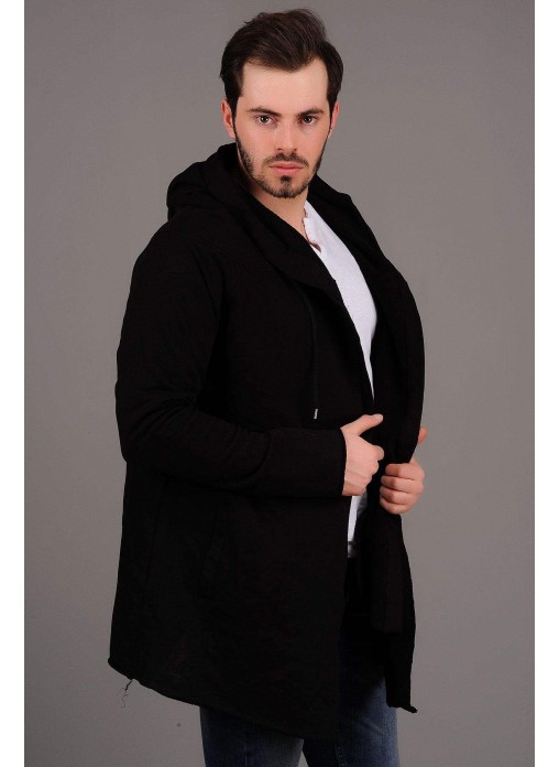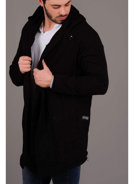 Kapşonlu Salaş Siyah Hırka