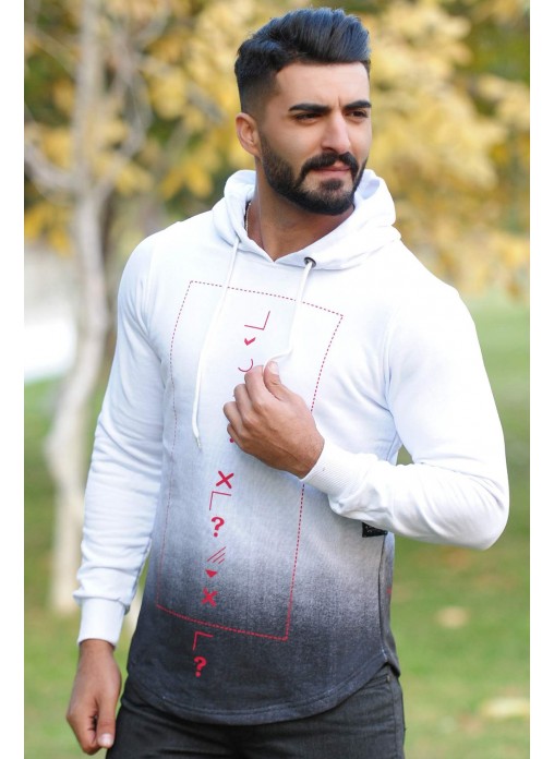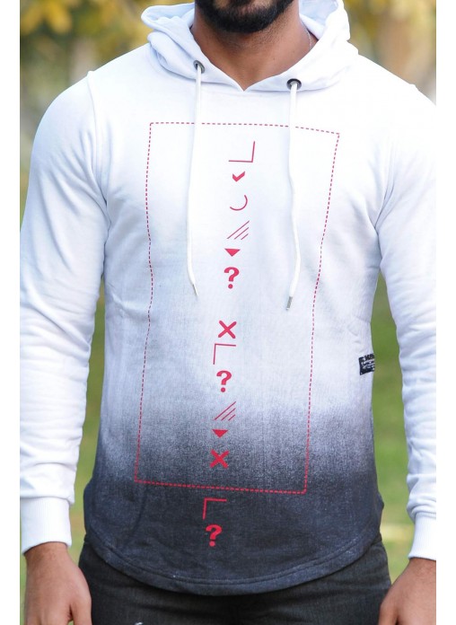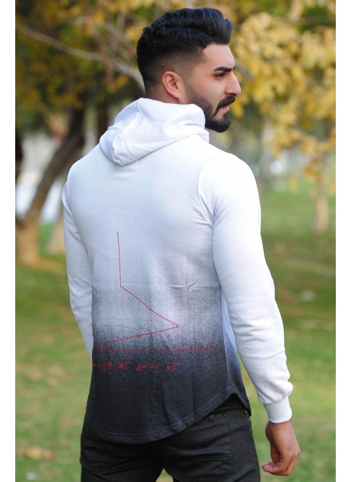 Kapşonlu Sweat Beyaz Antrasit Geçişli