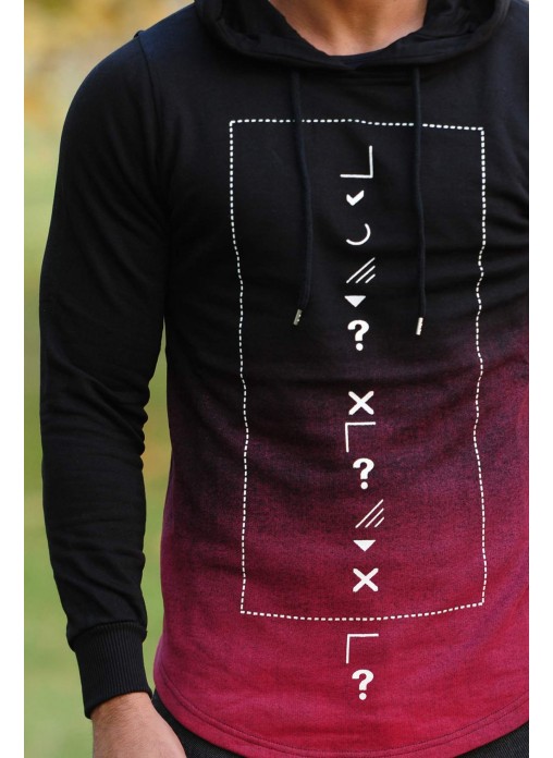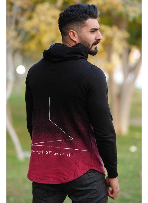 Kapşonlu Sweat Bordo Siyah Geçişli