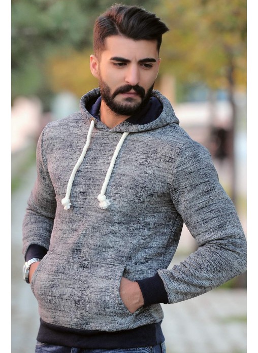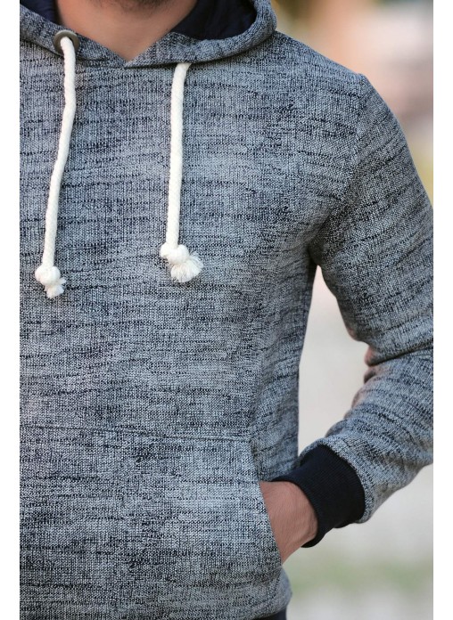 Kapşonlu Sweat Lacivert Gri Kırçıllı
