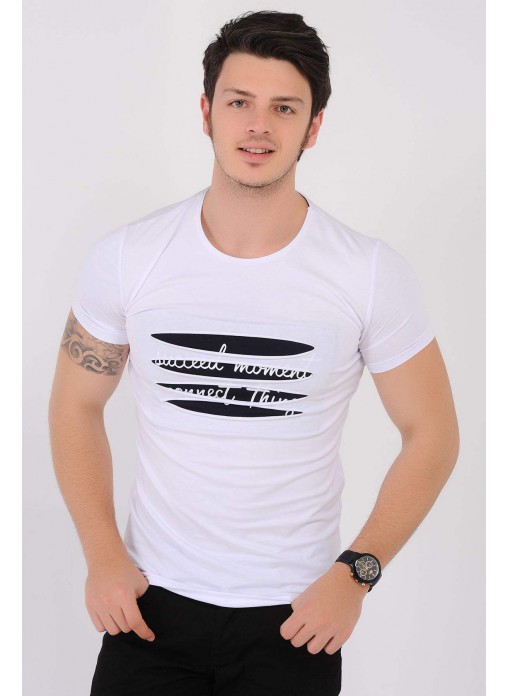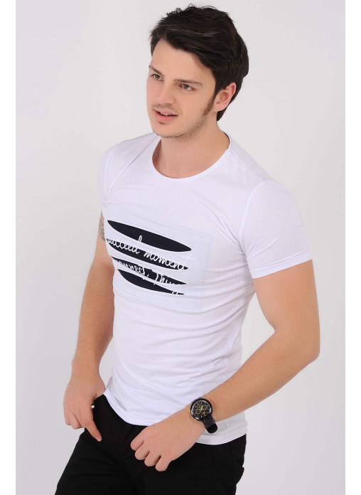 Kesim Tipi : Slim Fit Kesikli Beyaz T-Shirt