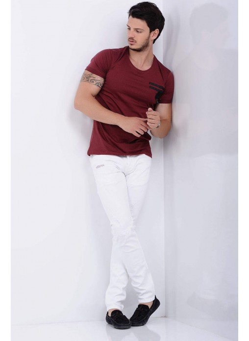 Puantiye Kare Çizgi Polo Yaka Mavi T-Shirt