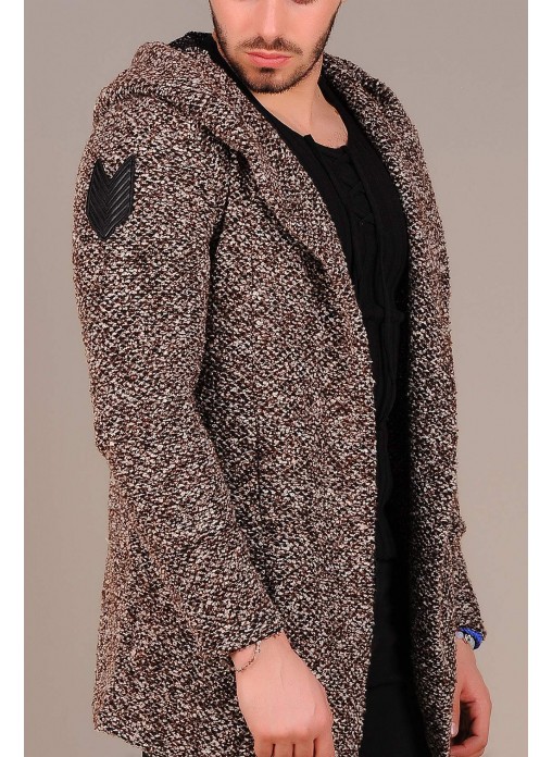 Kırçıllı Apoletli Hırka Kahve Beyaz