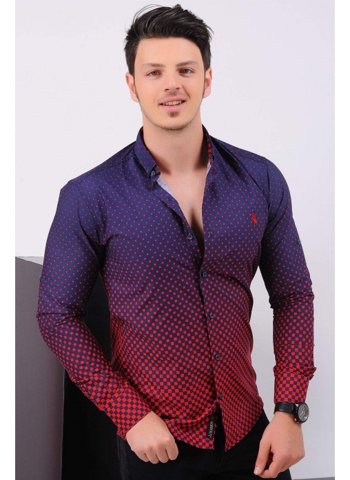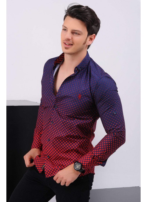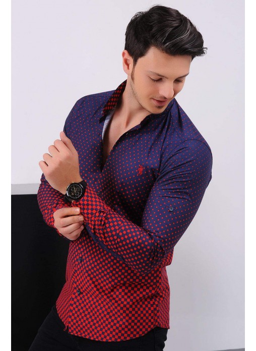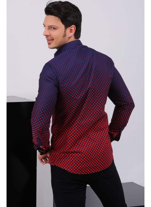 Kesim Tipi : Slim Fit Kırmızı Desenli Lacivert Gömlek