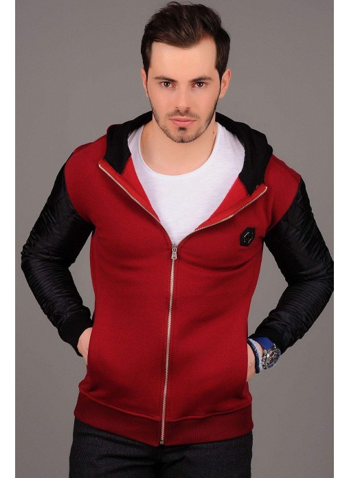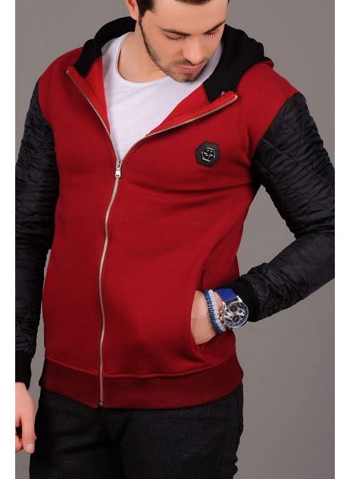 Kollar Siyah Kapşonlu Kırmızı Ceket