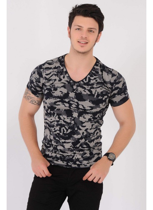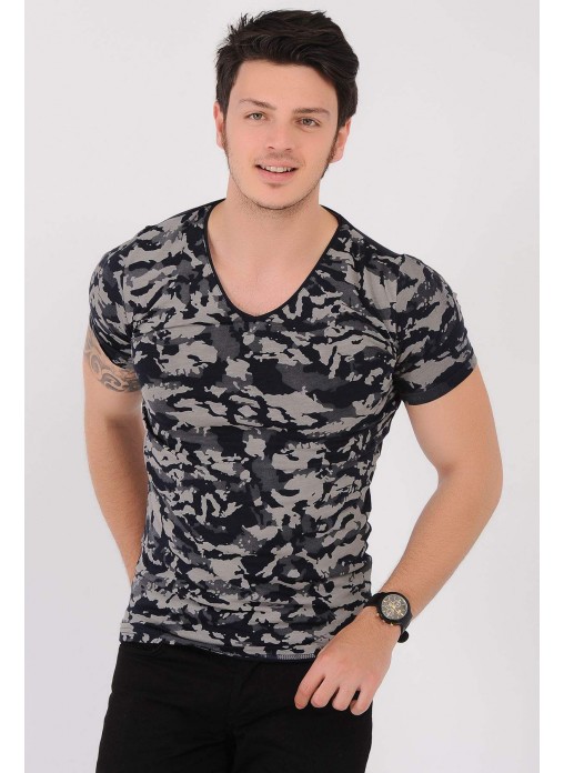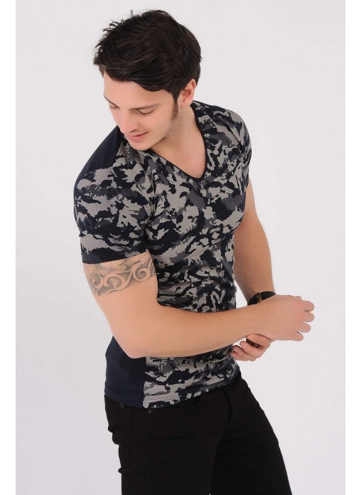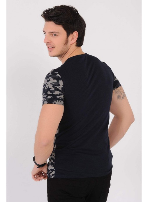 Kesim Tipi : Slim Fit Krem Desenli Lacivert T-Shirt