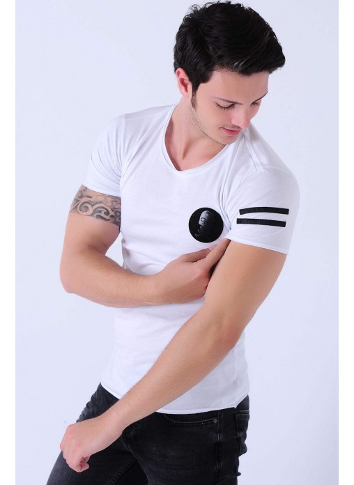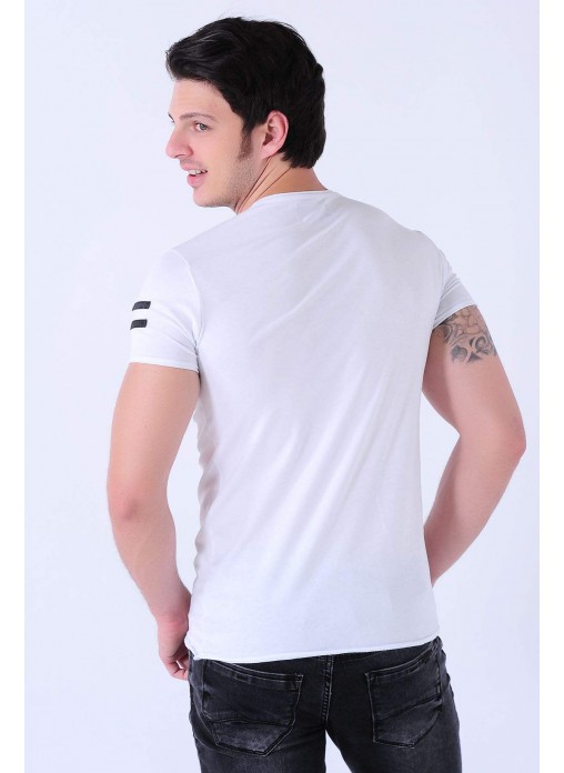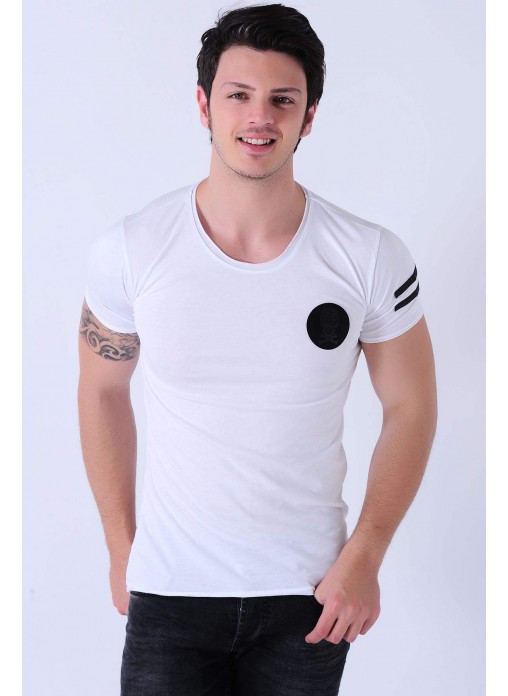 Kesim Tipi : Slim Fit Kuru Kafa Armalı Beyaz T-Shirt