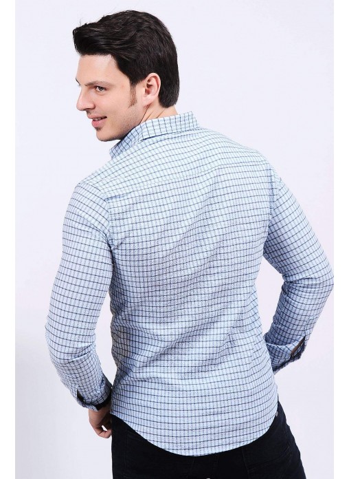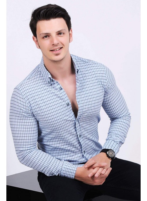 Lacivert Kareli Açık Mavi Gömlek