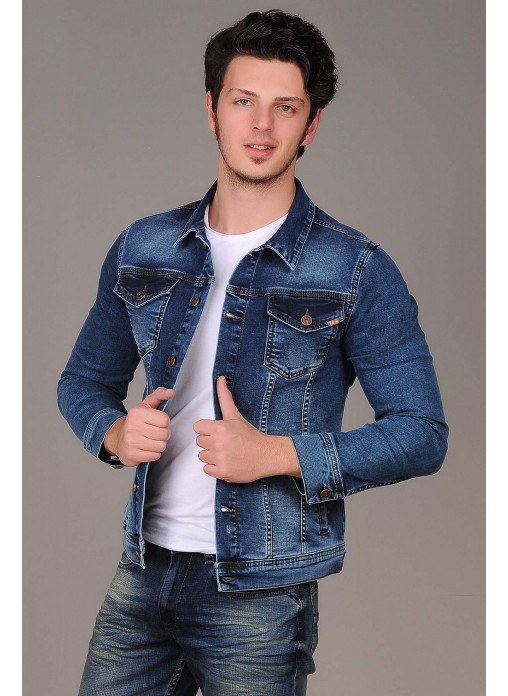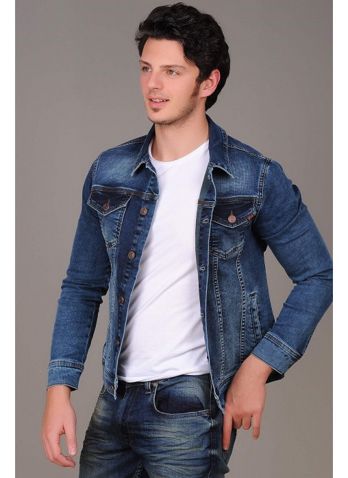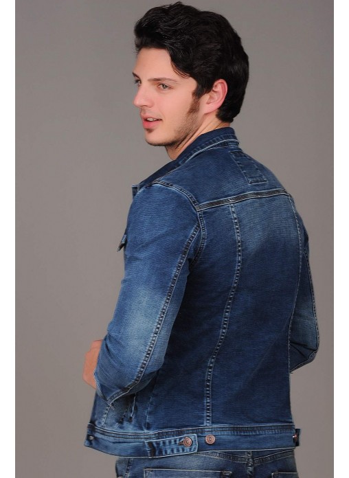 Lacivert Yıkamalı Çift Cepli Kot Ceket