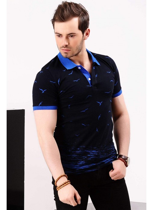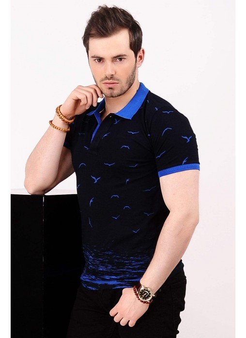 Martılı Polo Yaka Lacivert T-shirt