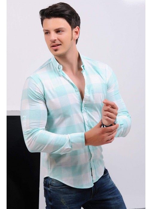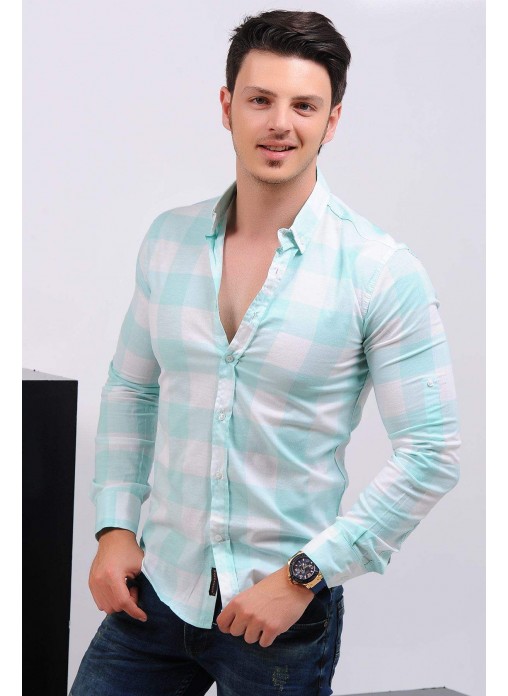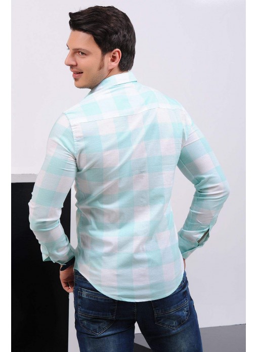 Kesim Tipi : Slim Fit Nilyeşili Beyaz Ekoseli Gömlek