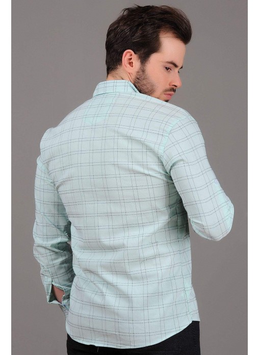 Oxford Yaka Çizigili Açık Yeşil Gömlek