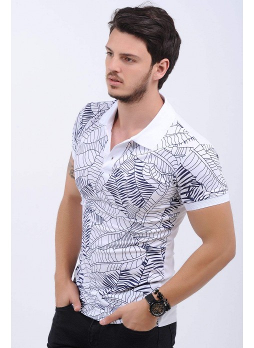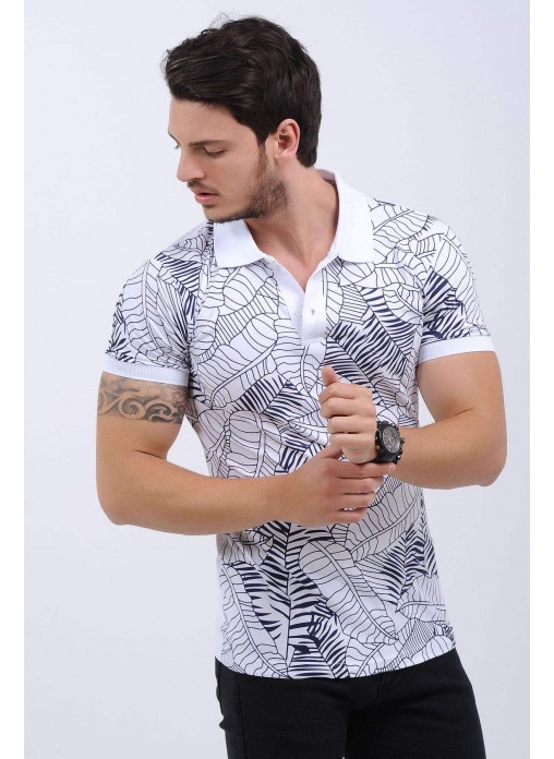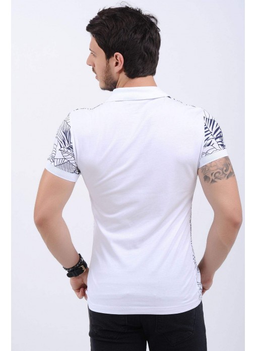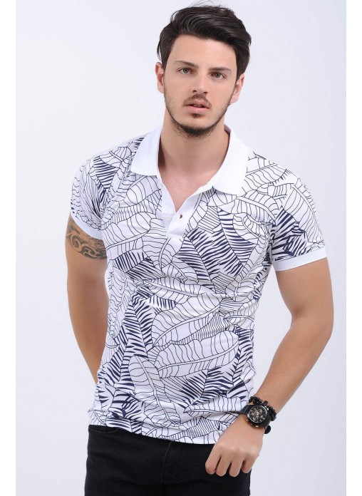 Siyah Desenli Polo Yaka Beyaz T-Shirt