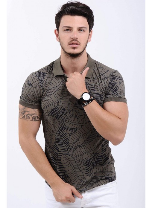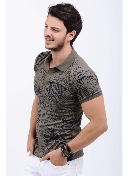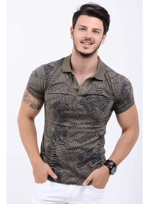 Siyah Desenli Polo Yaka Haki T-Shirt