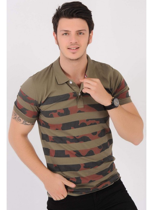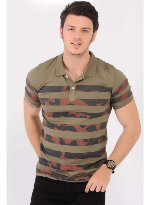 Kesim Tipi : Slim Fit Şeritli polo Yaka Haki T-Shirt