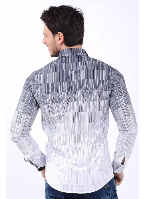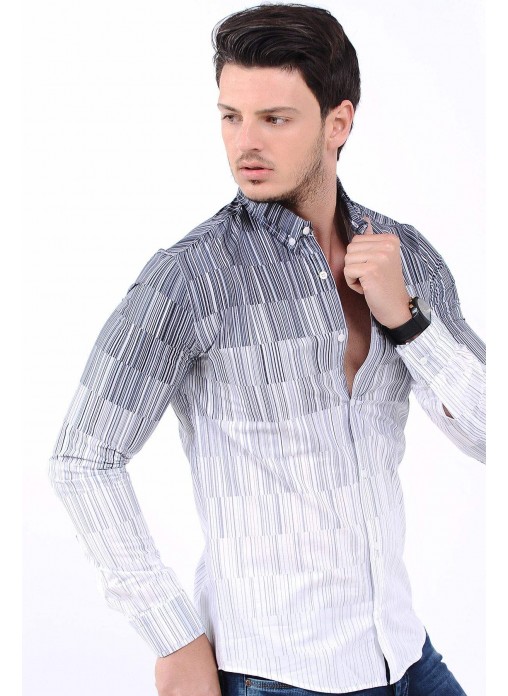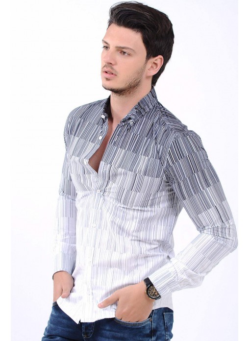 Kesim Tipi : Slim Fit Üstü Siyah Desenli Beyaz Gömlek