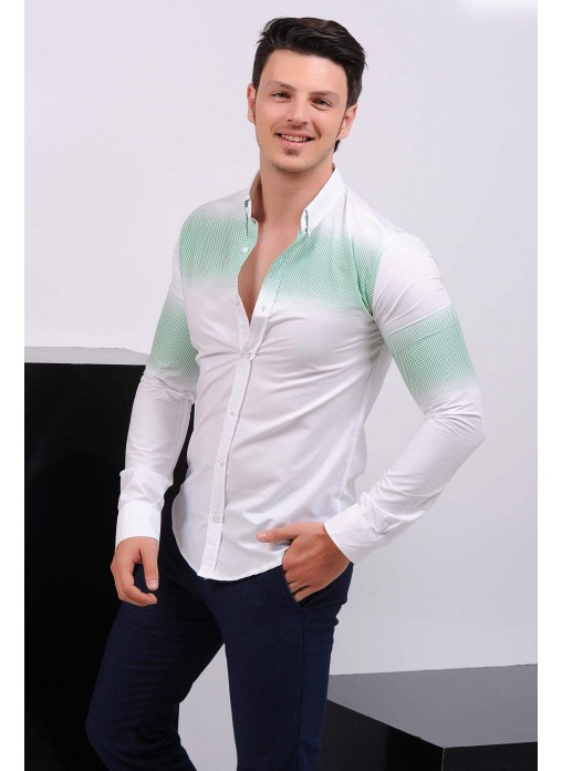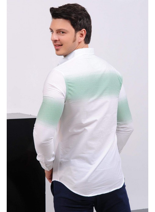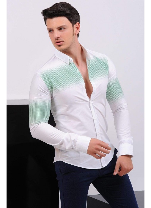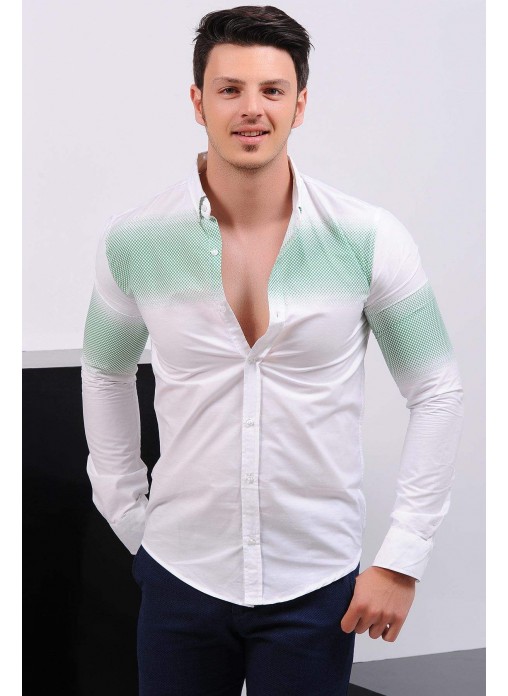 Kesim Tipi : Slim Fit Yeşil Benekli Beyaz Gömlek