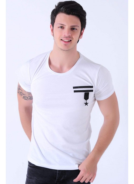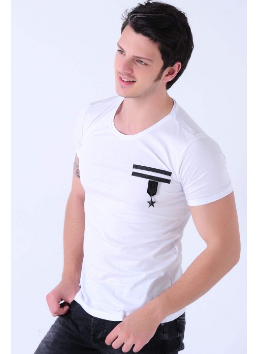 Kesim Tipi : Slim Fit Yıldız Armalı Beyaz T-Shirt