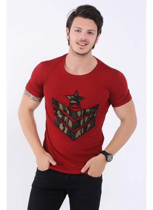 Yıldız Kamuflaj Baskılı Kırmızı T-Shirt