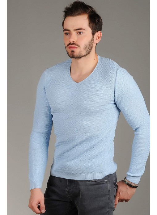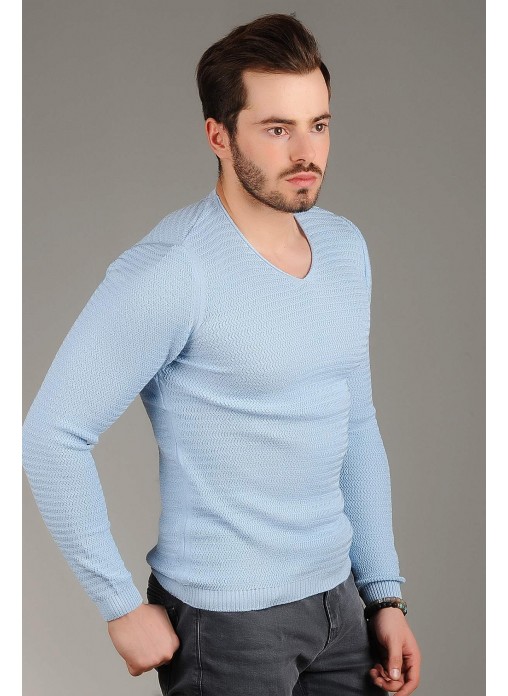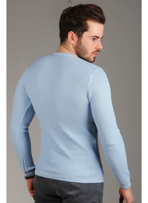 Zincir Örgü Triko Kazak Mavi