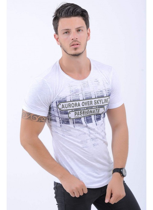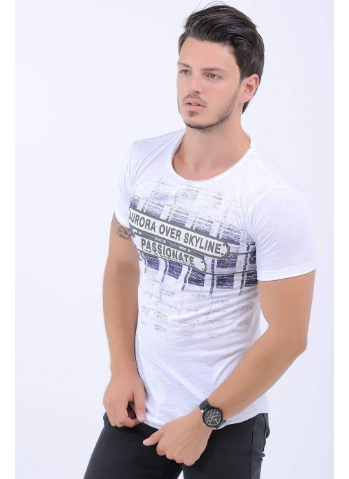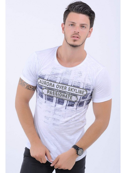 Kesim Tipi : Slim Fit Aurora Baskılı Beyaz T-Shirt