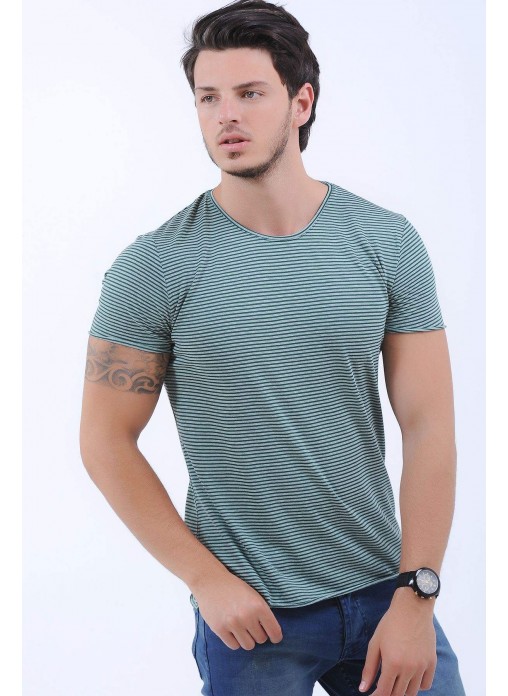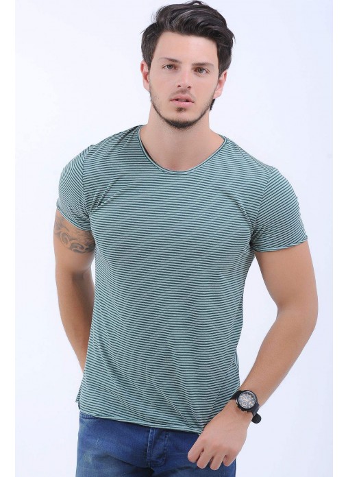 Çizgili Tek Cep Haki Beyaz Gömlek