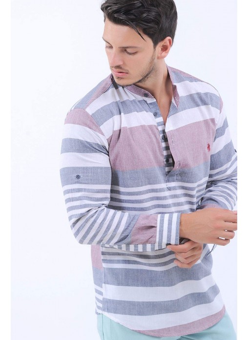 Kesim Tipi : Slim Fit Bordo Gri Beyaz Hakim Yaka Gömlek