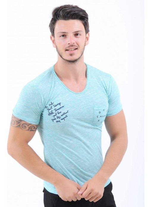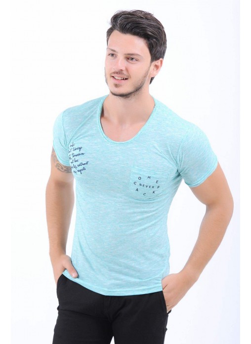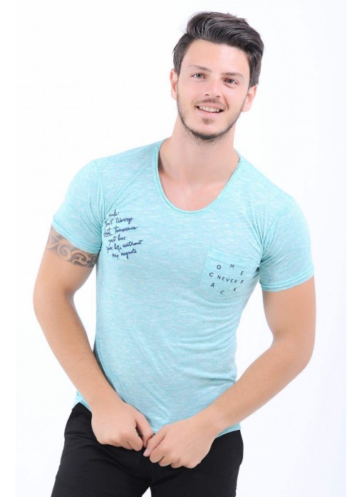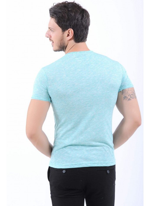Siyah Baskı Desenli U Yaka Haki T-Shirt