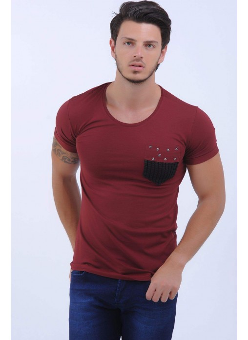 Cep Kabartma Desen Bordo T-Shirt