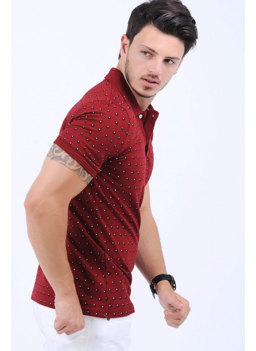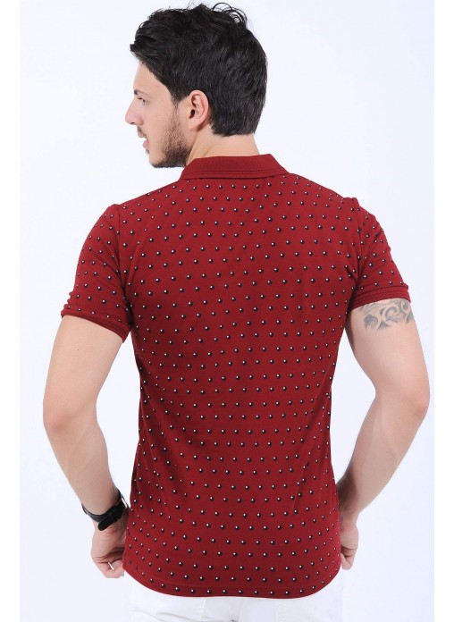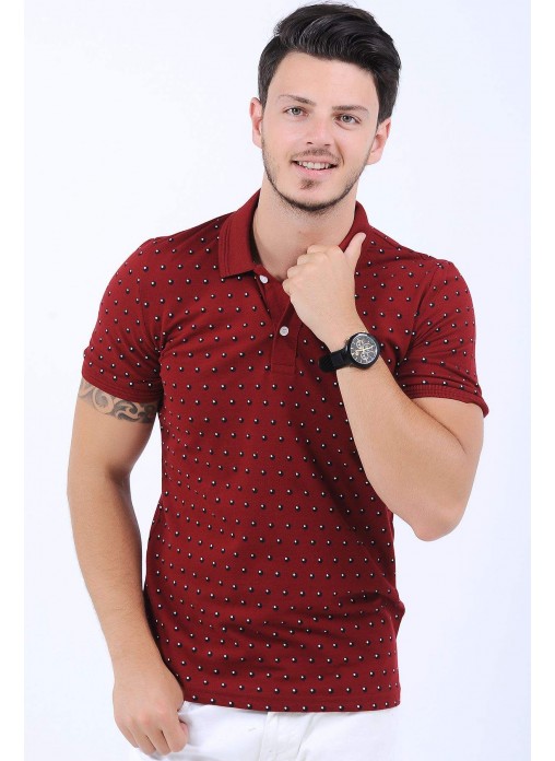 Kesim Tipi : Slim Fit Damla Desen Polo Yaka Bordo T-Shirt