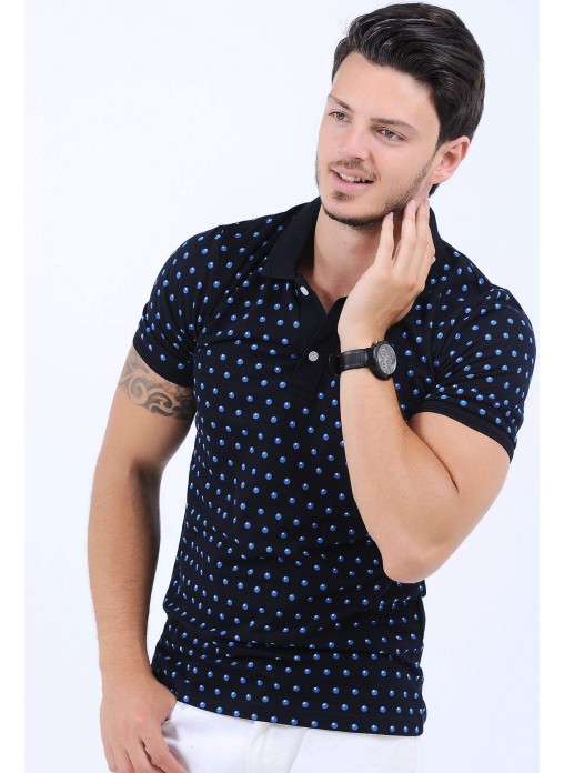Siyah Baskı Desenli U Yaka Kırmızı T-Shirt