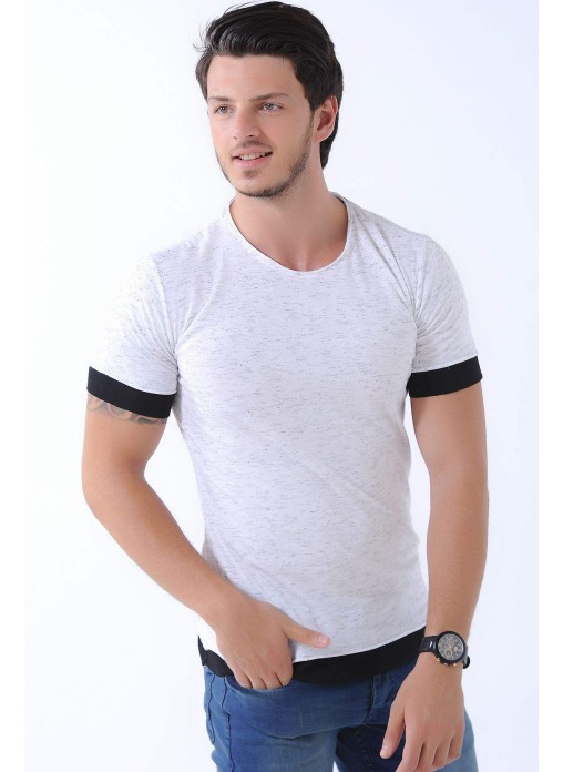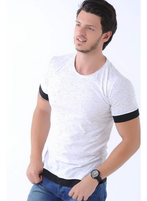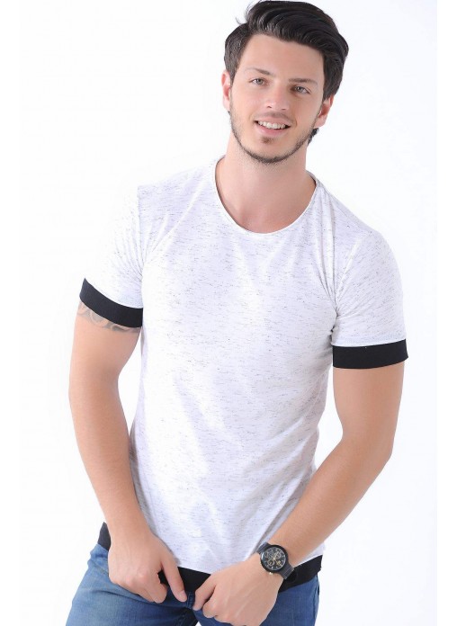Etek Kol Siyah Detay Kırçıllı Krem T-Shirt