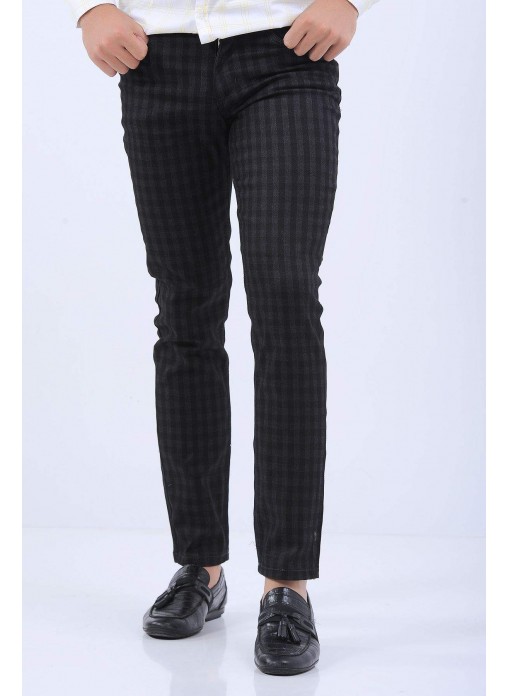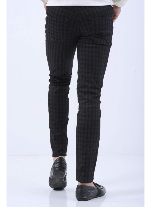 Kare Desen Siyah Pantolon