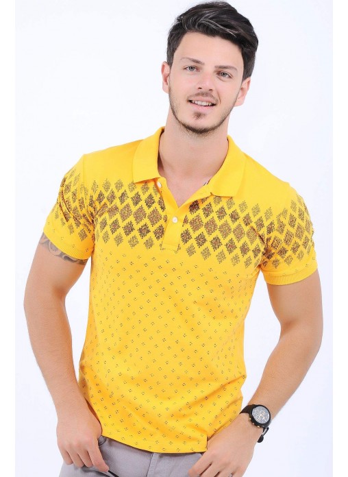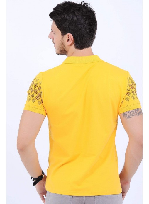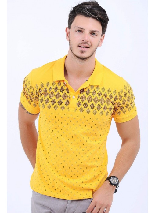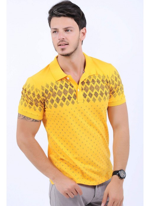 Kırmızı Desen Polo Yaka Sarı T-Shirt