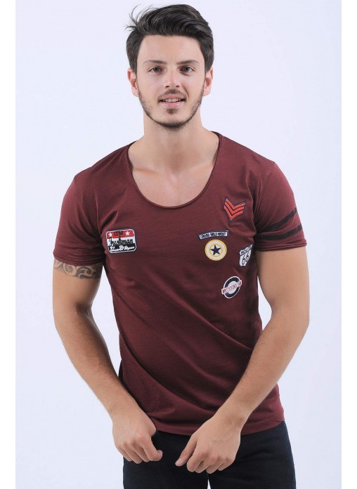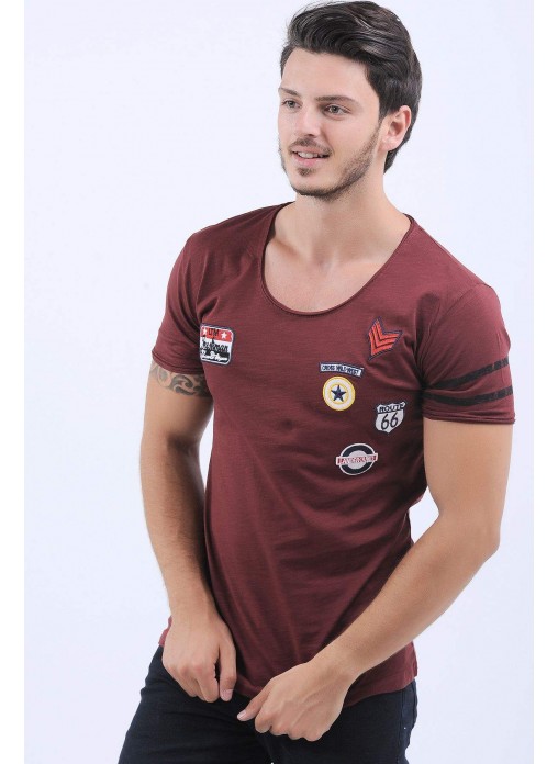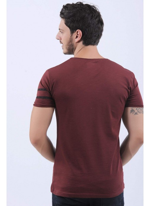 Kol Şerit Armalı Bordo T-Shirt
