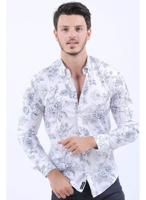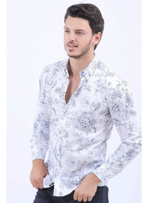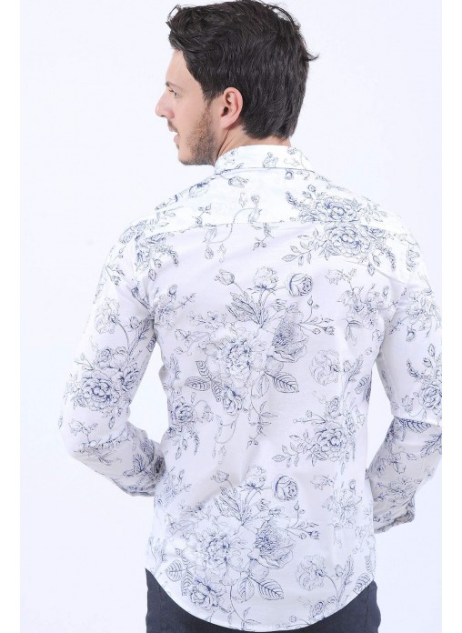 Beyaz Desenli Polo Yaka Mavi T-Shirt