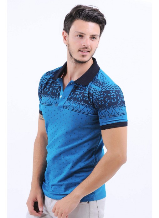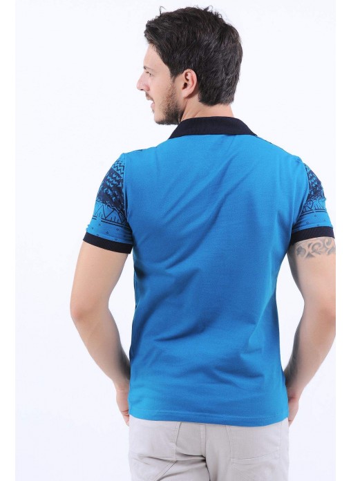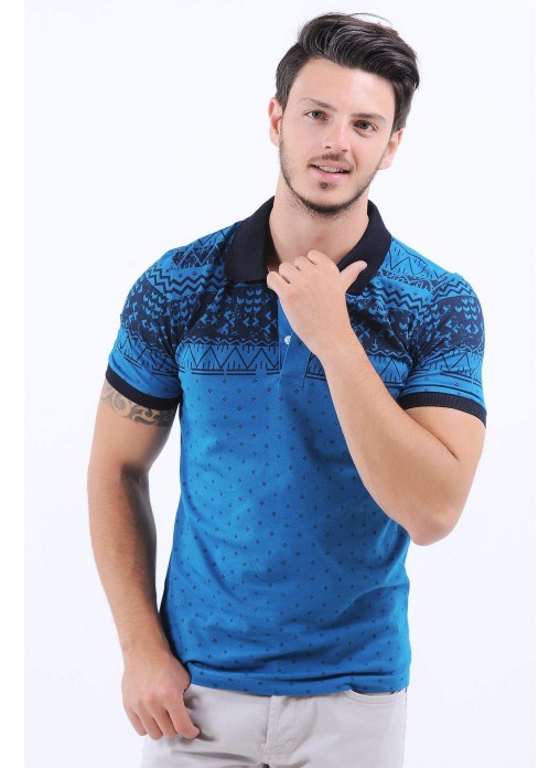 Lacivert Desen Polo Yaka Mavi T-Shirt