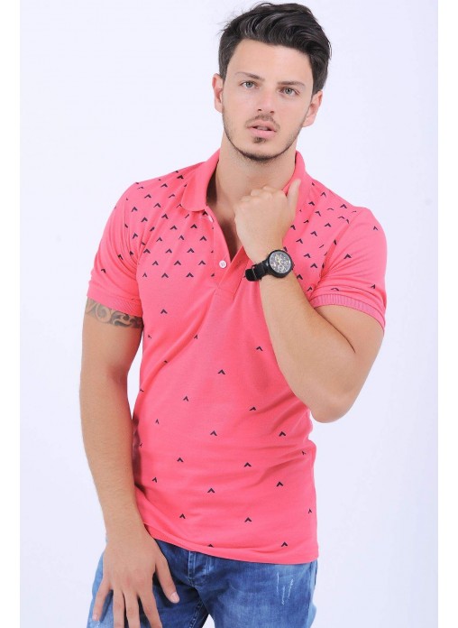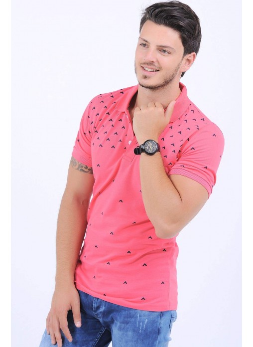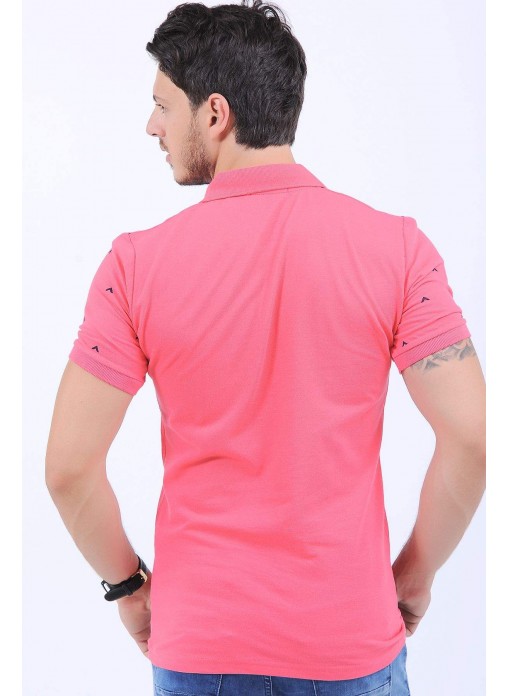 Kesim Tipi : Slim Fit Lacivert Desen Polo Yaka Pembe T-Shirt
