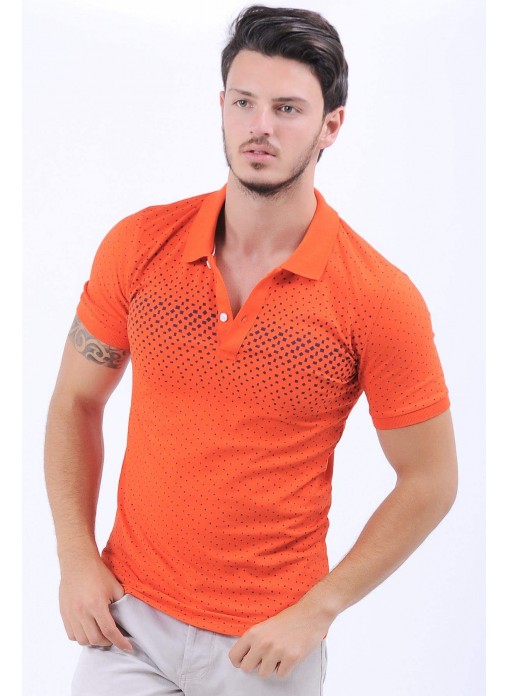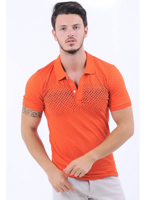 Lacivert Nokta Desen Polo Yaka Turuncu T-Shirt