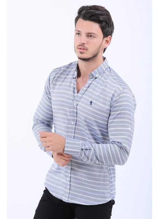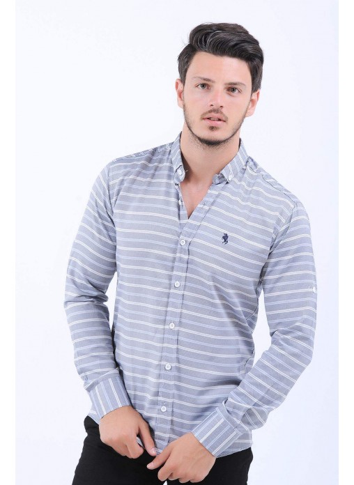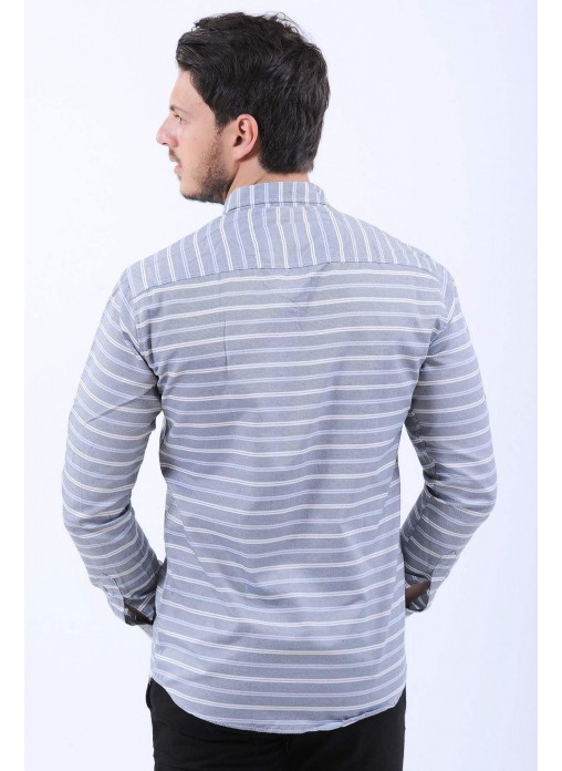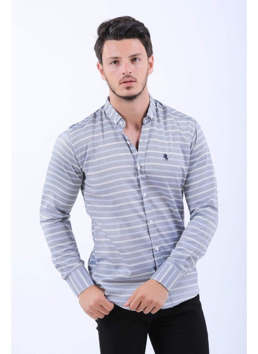 Sarı Gri Çizgi Desen Beyaz Gömlek