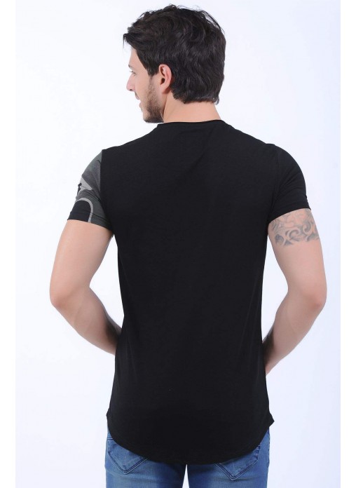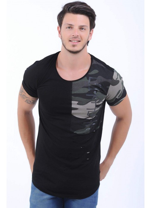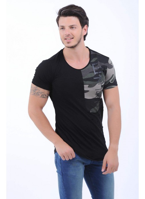 Kamuflaj Şerit Desenli Lacivert T-Shirt